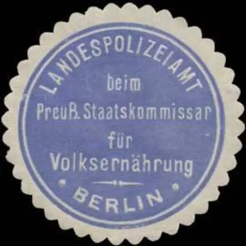 beim preuß. Staatskommissar für Volksernährung, LKA, blau, weiß, geprägt, Größe/Zustand: 4 , guter Zustand, Original Verschluss-Siegelmarke aus Papier welche früher von Behörden, Firmen etc. zum Versiegeln der Briefe benutzt wurden