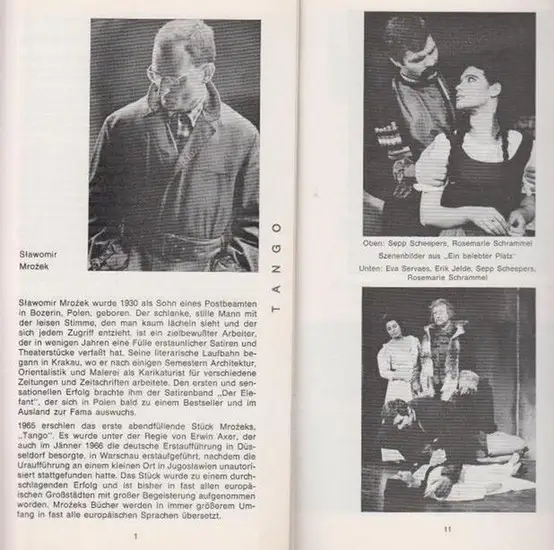 Landestheater Salzburg. - Direktion: Gandolf Buschbeck (Hrsg.). - Mrozek, Slawomir. - Iredynski, Ireneusz: 2 Programmhefte des Landestheaters Salzburg, Spielzeit 1967 / 1968. Tango / URAUFFÜHRUNG 'Leb wohl, Judas….' Aus dem Inhalt: 'Tango' von Slawomir Mr