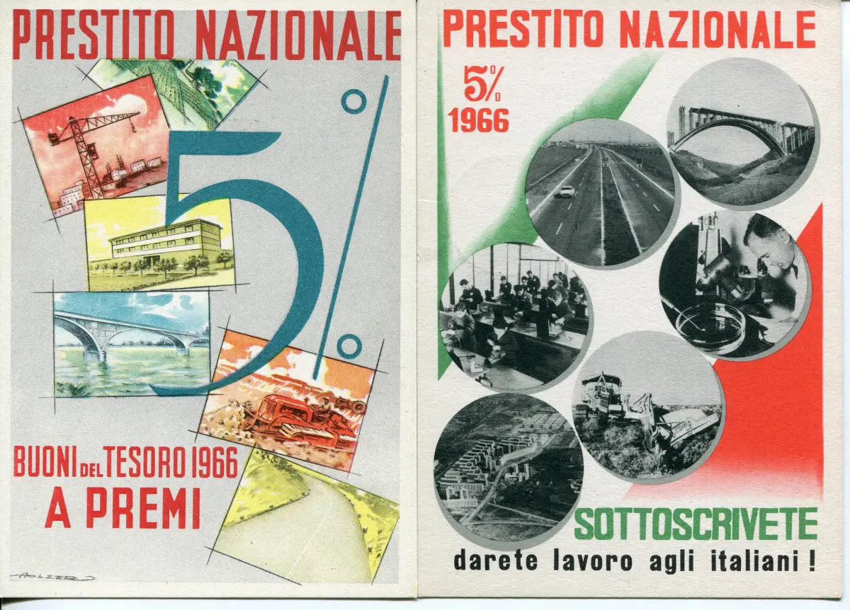Staatsanleihe 1966 - Zwei verschiedene Postkarten - Staatsanleihe 1966 - Zwei verschiedene Werbekarten des Darlehens 5% - nicht gereist Nr. 580/5