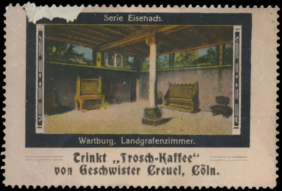 Serie Eisenach, trinkt Frosch-Kaffee von Geschwister Greul, Cöln, Größe/Zustand: 5x7 , beschädigt, Original alte Reklamemarke die seinerzeit für die Werbung benutzt wurde