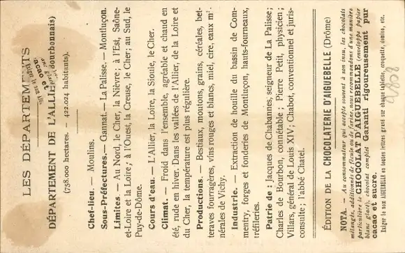 Landkarten Ak Allier, Edition de la Chocolaterie d'Aiguebelle, Moulins, Ruine