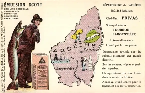 Landkarten Ak Ardèche, Emulsion Scott Reklame, Fischer mit Fang, Privas