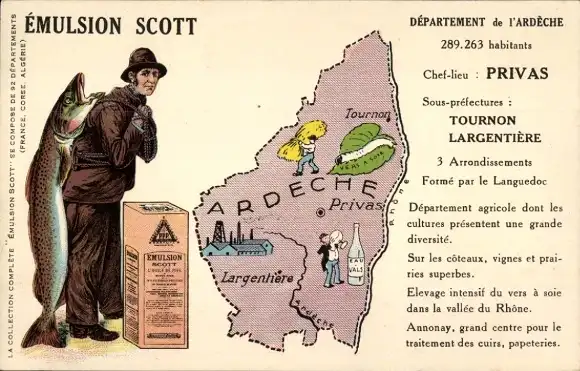 Landkarten Ak Ardèche, Emulsion Scott Reklame, Fischer mit Fang, Privas