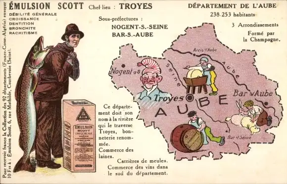 Landkarten Ak Aube, Emulsion Scott Reklame, Fischer mit Fang, Troyes
