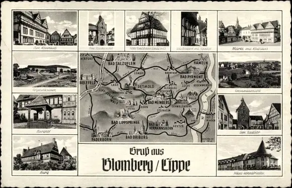 Landkarten Ak Blomberg in Lippe, Burg, Burghof, Markt mit Rathaus