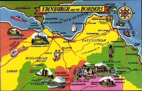Landkarten Ak Edinburgh Schottland, Borders
