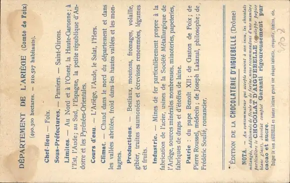 Landkarten Ak Foix Ariege, Edition de la Chocolaterie d'Aiguebelle, Schloss