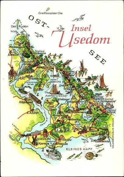 Landkarten Ak Insel Usedom, Wolgast, Lassan, Bansin