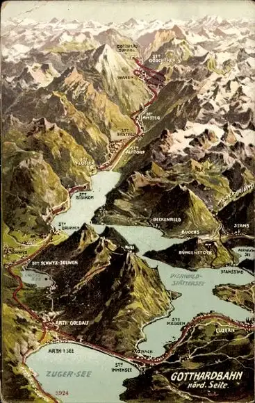 Landkarten Ak Kanton Tessin, Gotthardbahn, Zuger See, Vierwaldstättersee