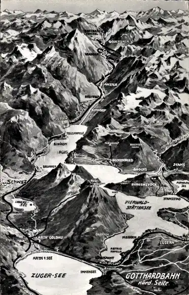 Landkarten Ak Kanton Tessin Schweiz, Gotthardbahn, Zugersee
