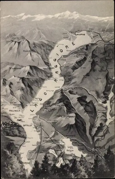 Landkarten Ak Lago Maggiore Piemonte, Gesamtansicht