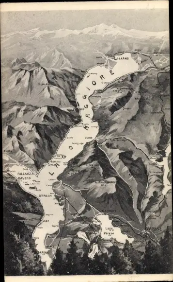 Landkarten Ak Lago Maggiore Piemonte, Gesamtansicht