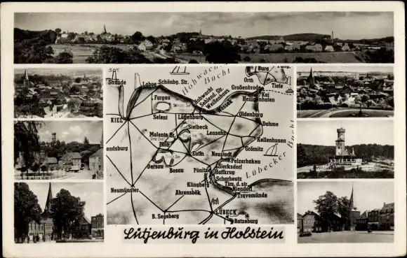 Landkarten Ak Lütjenburg in Holstein, Panorama, Gesamtansichen, Straßenpartie