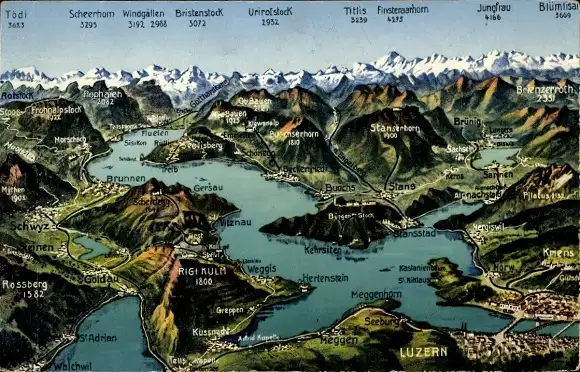 Landkarten Ak Luzern Stadt Schweiz, Gesamtansicht, See, Berge