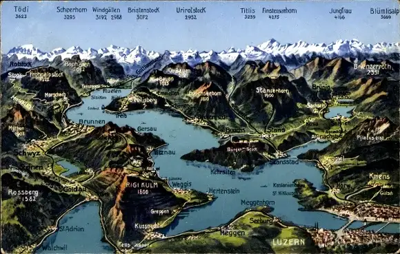 Landkarten Ak Luzern Stadt Schweiz, Vierwaldstättersee