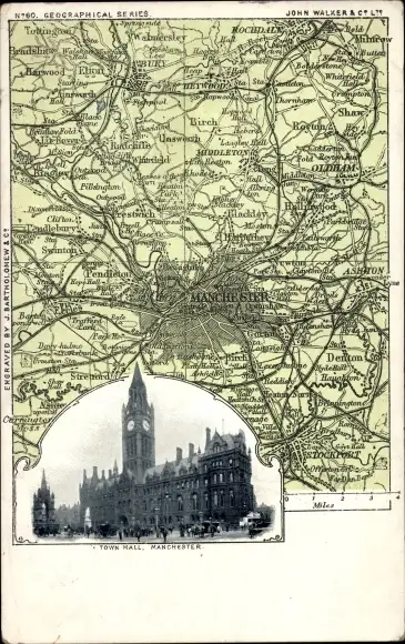 Landkarten Ak Manchester England, Rathaus, Stadt mit Umgebung