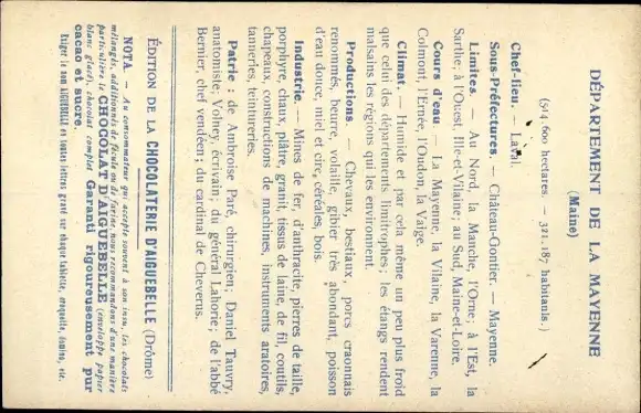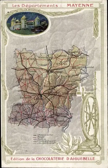 Landkarten Ak Mayenne, Laval, Gorron, Werbung für Chocolaterie d'Aiguebelle