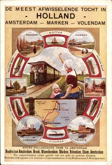 Landkarten Ak Noord Hollandsche Tram, Amsterdam, Holländische Eisenbahn, Tracht, Dampfer