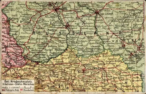 Landkarten Ak Östlicher Kriegsschauplatz Galizien, Lublin, Warschau