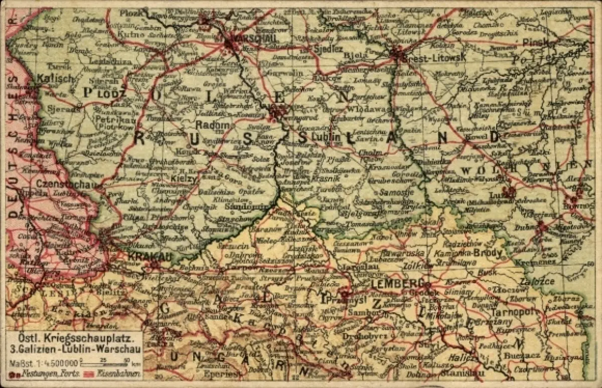 Landkarten Ak Östlicher Kriegsschauplatz, Galizien-Lublin-Warschau