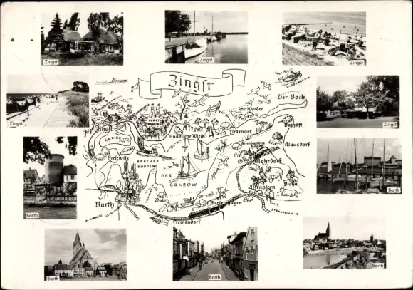 Landkarten Ak Ostseebad Zingst, Barth, Teilansichten, Kirche, Hafen