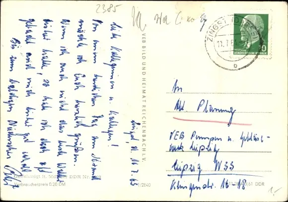 Zustand, siehe Scan, gelaufen, 1964 - ca 15 cm X 11 cm