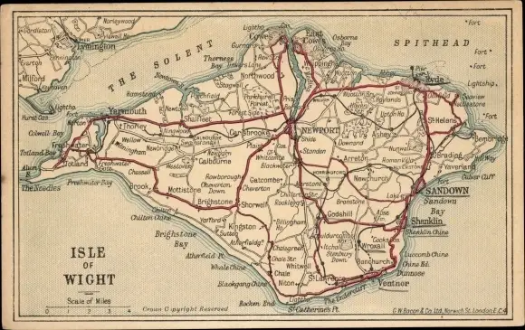 Landkarten Ak Sandown Isle of Wight England, Newport
