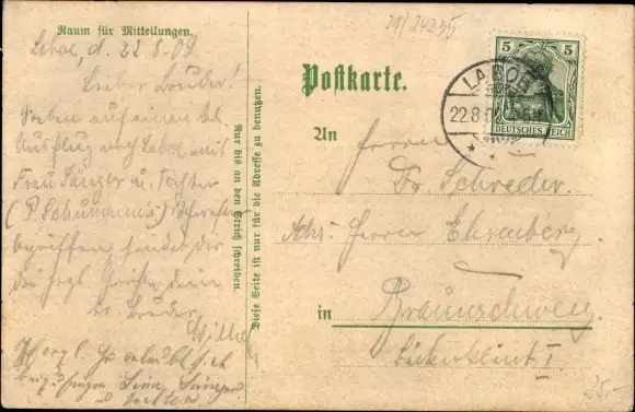 Zustand, siehe Scan, gelaufen, 1909 - ca 14 cm X 9 cm