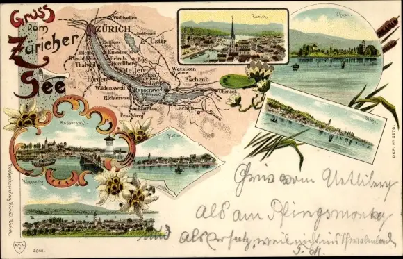 Landkarten Litho Zürich Stadt Schweiz, Züricher See, Stadtansichten