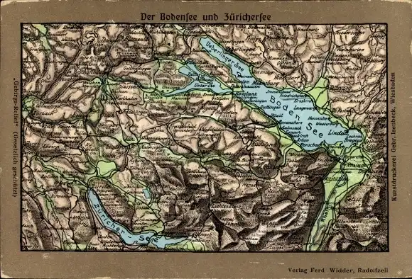 Landkarten Relief Ak Bodensee und Zürichersee