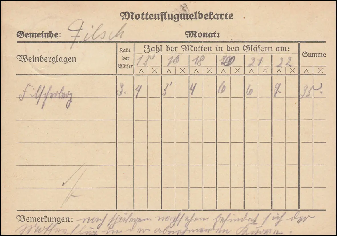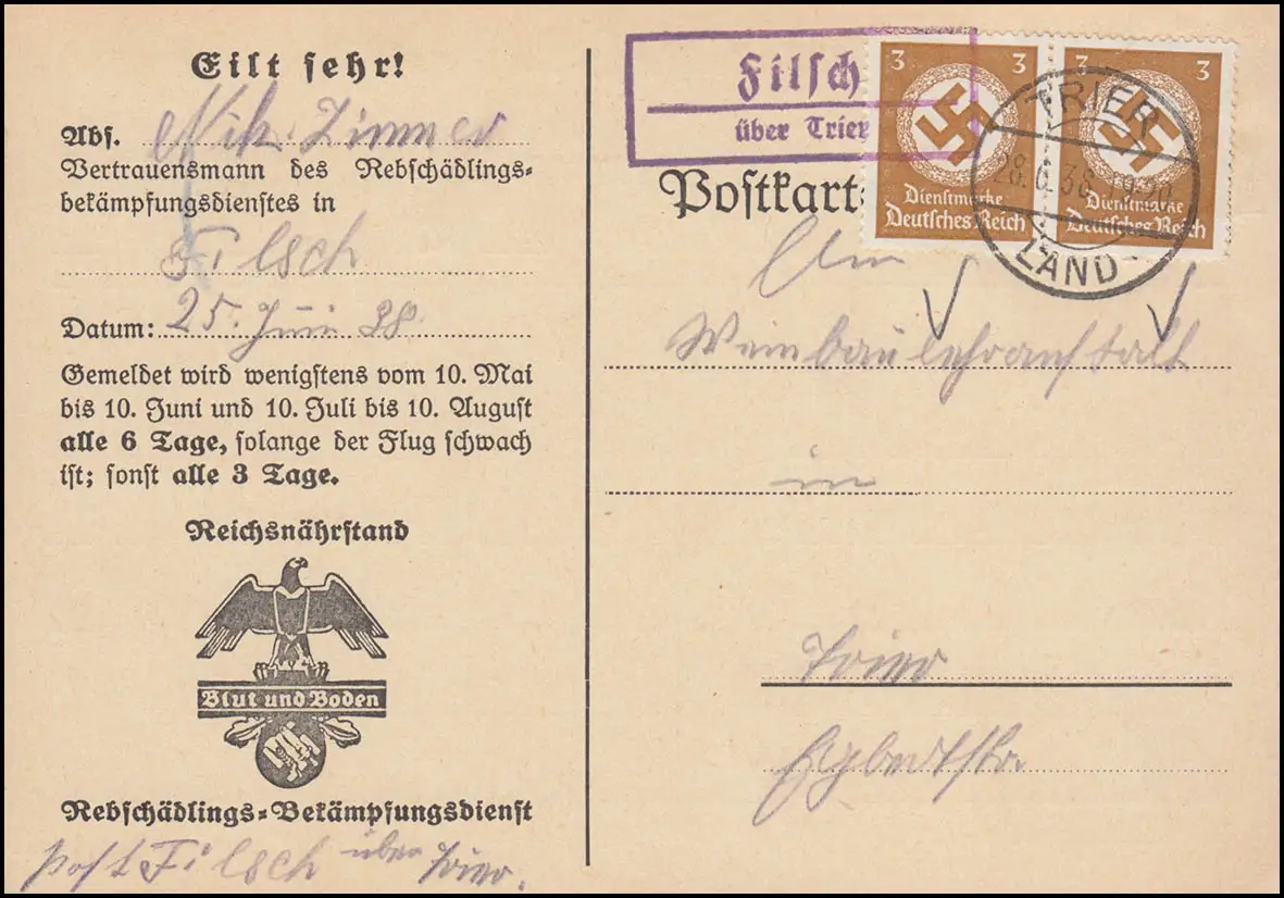Landpost Filsch über Trier auf Dienst Mottenflugmeldekarte, 28.6.38