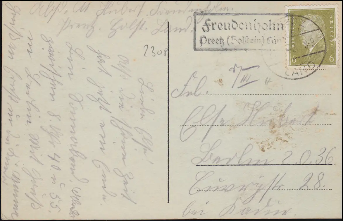 Landpost Freudenholm über PREETZ (HOLSTEIN) LAND 21.9.1942 auf AK Genesungsheim