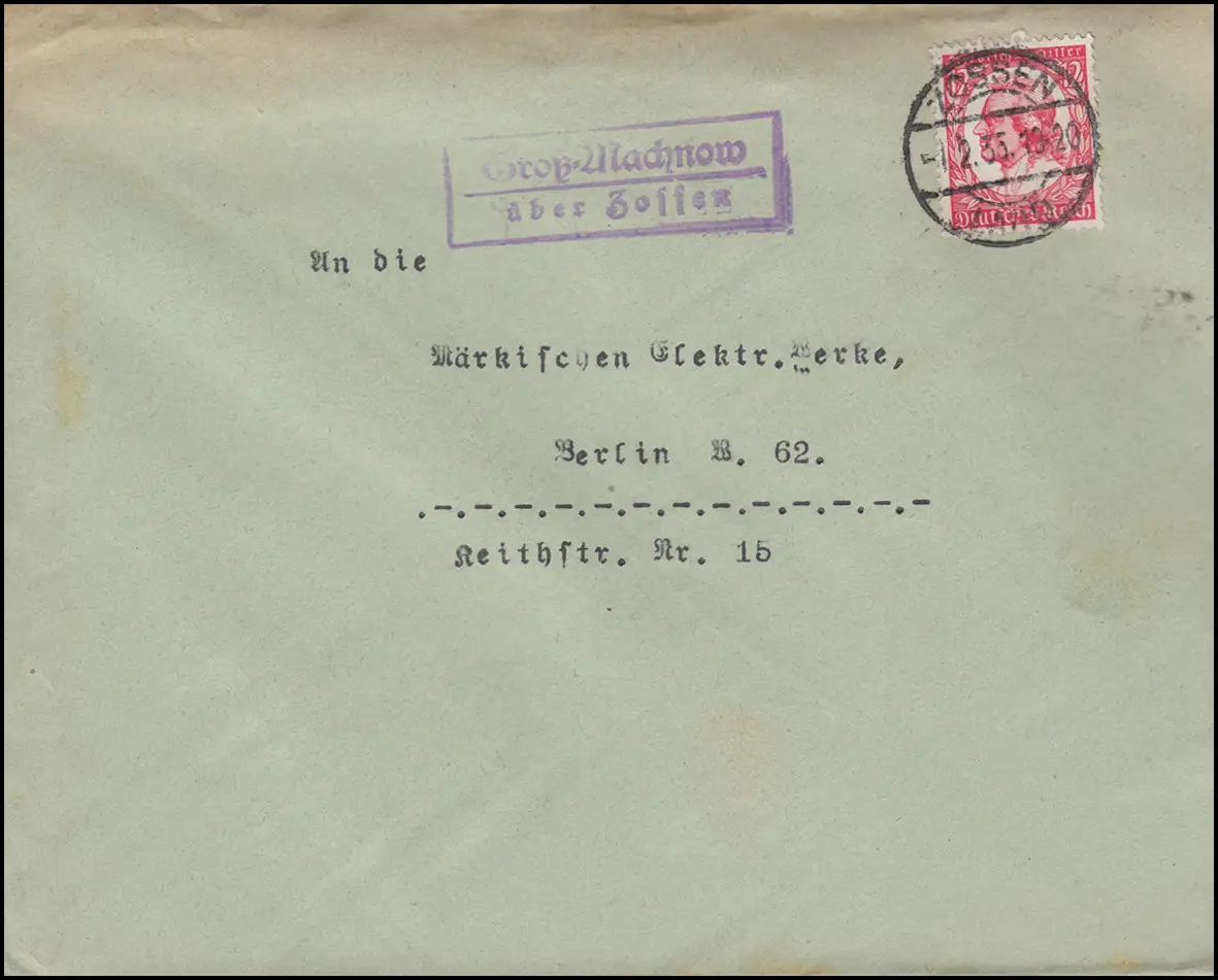 Landpost Groß-Machnow über Zossen Land 1.2.35 auf Brief