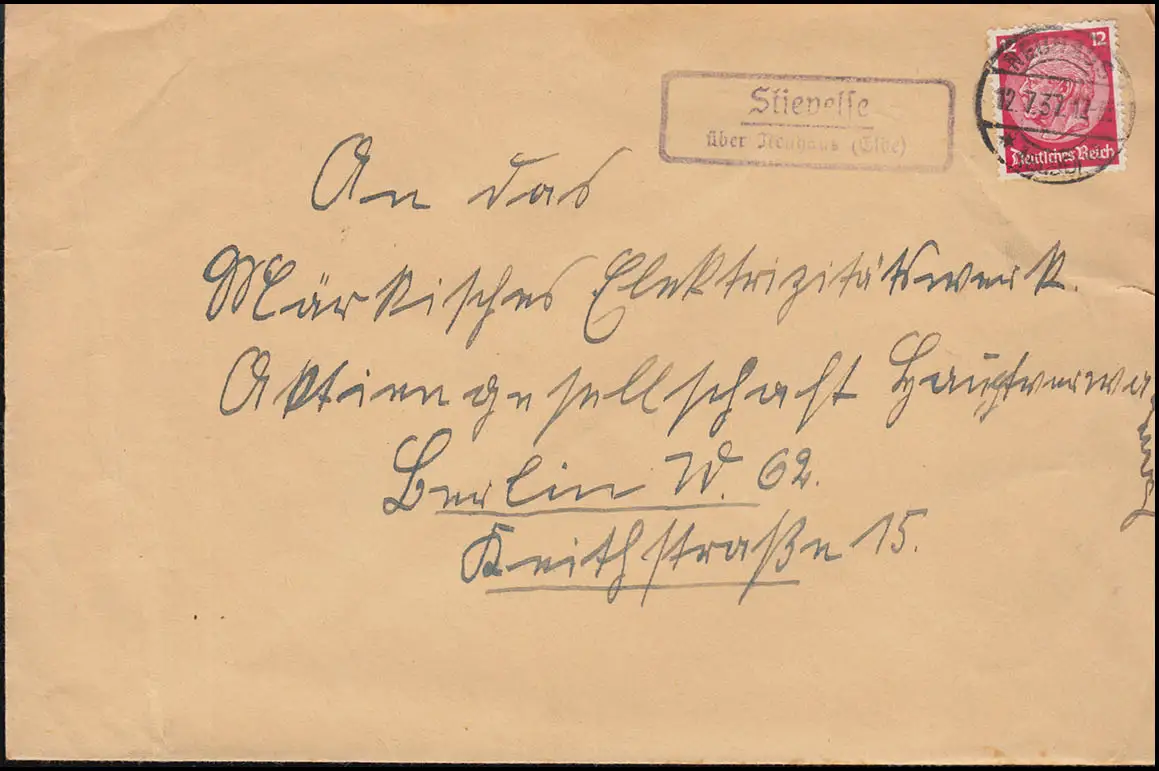 Landpost Stiepelse über NEUHAUS (ELBE) 12.7.37 auf Brief nach Berlin