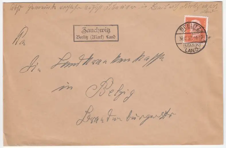 Beleg, Brief, Michel 466 EFLandpoststempel, Zauchwitz Beelitz (Mark) LandStempeldaten: Beelitz (Mark) Land, 30.12.32 Anmerkungen: keine