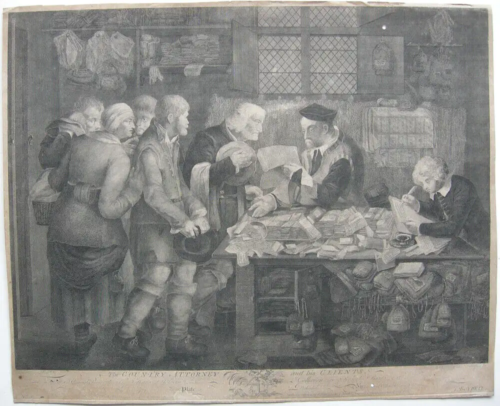 Landrichter und sein Clientel Orig Radierung Walker nach Holbein d.J. um 1750