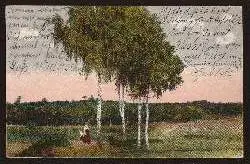 Landschaft mit Birken - Gelaufen. 1923 Briefmarke entfernt. (Landschaft)