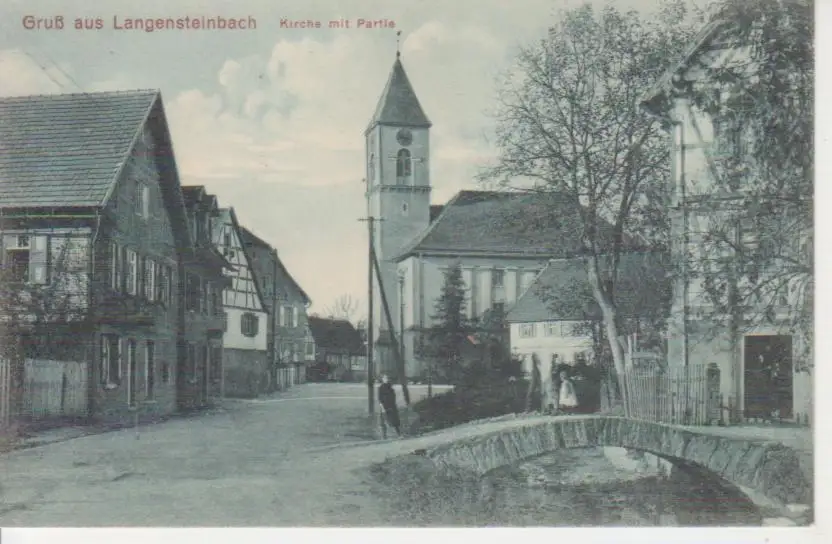Langensteinbach (Karlsbad) Partie an der Kirche ngl 225.812