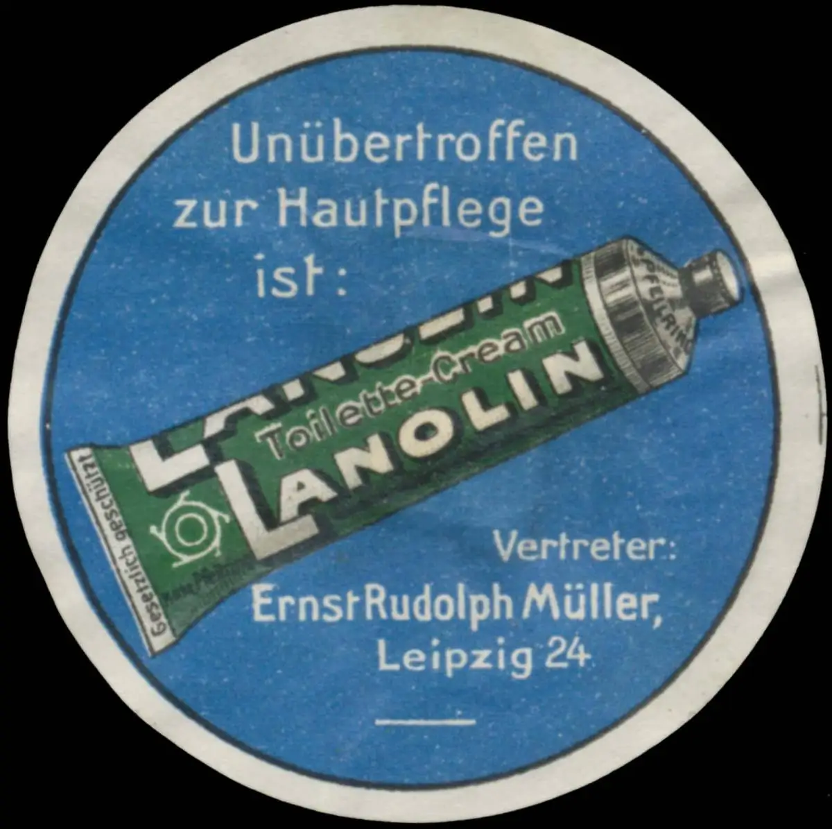 Lanolin zur Hautpflege, Jaffe, Benno & Darmstaedter-Lanolin-Fabrik GmbH, Berlin, Größe/Zustand: 5 , leicht geknickt, Original alte Reklamemarke die seinerzeit für die Werbung benutzt wurde