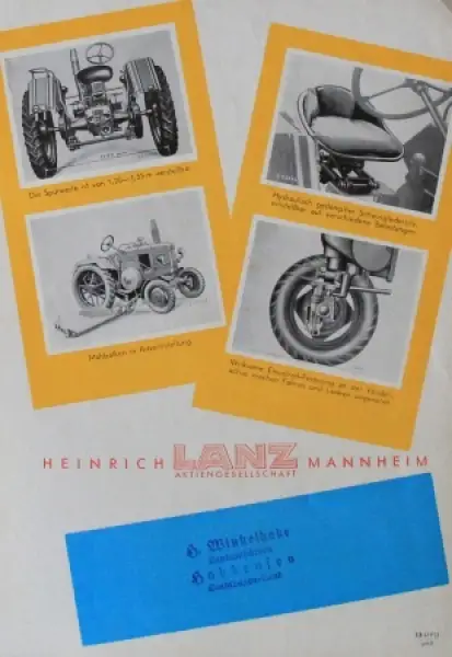 Lanz Bulldog 17 PS D 1706 Modellprogramm 1949 Traktorprospekt (0656)