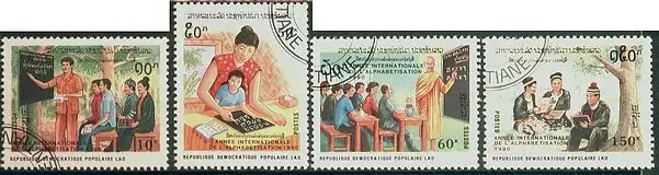 Internationales Jahr der Alphabetisierung: Lehrer mit Erwachsenen beim Schreibunterricht / Frau mit Kind / Mönch mit Schülern / Frau und zwei Männer