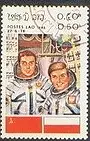 Raumfahrt; Flüge von russischen Kosmonauten mit Kosmonauten anderer Staaten: Kosmonauten, Flaggen der Sowjetunion und eines weiteren Landes: Polen