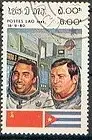 Raumfahrt; Flüge von russischen Kosmonauten mit Kosmonauten anderer Staaten: Kosmonauten, Flaggen der Sowjetunion und eines weiteren Landes: Kuba