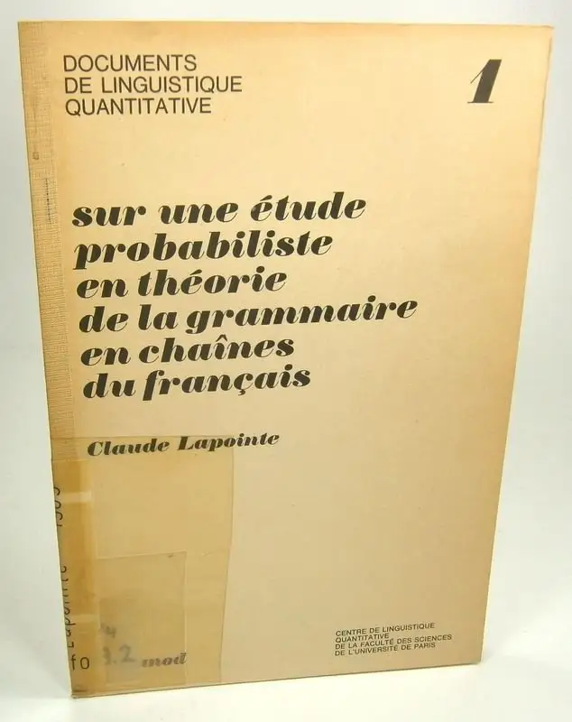Lapointe, Claude: Sur une etude probabiliste en theorie de la grammaire en chaines du francais. (Documents de Linguistique Quantitative 1).