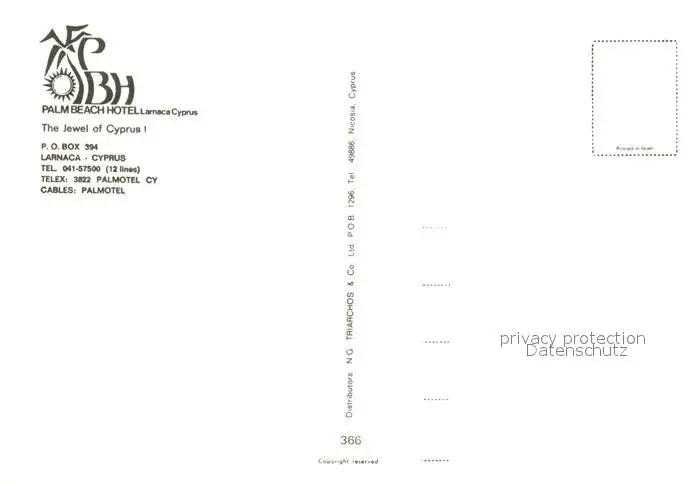 Larnaca Palm Beach Hotel Strand Larnaca postalisch nicht gelaufen nach 1965 Erhaltung siehe scans [WerneD78] WernPID7