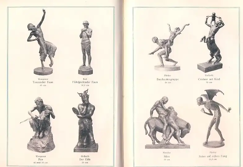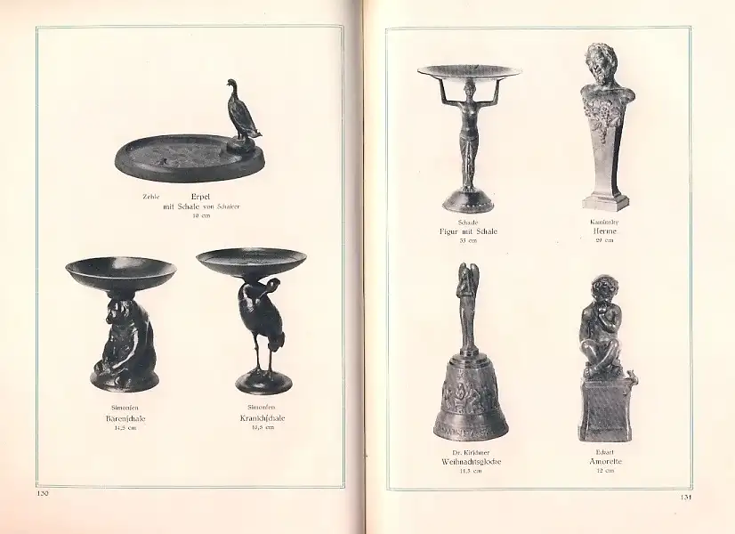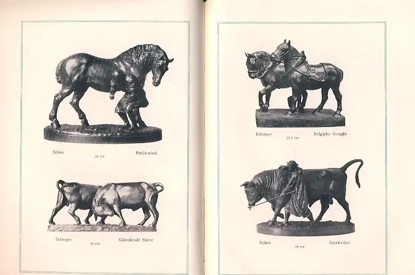 guter Zustand, geringe Gebrauchs- und Alterungsspuren: Rücken etwas beschabt - untere Deckelecke etwas gestaucht - Bindung gelockert, am Deckel stärker - Seiten sauber und ordentlich, aber Klammerrost - ohne Preisliste, Die letzte Ausgabe unseres Kataloges war schnell vergriffen. Wir freuen uns, hierdurch das große Interesse feststellen zu können, das für unseren Bildguß vorhanden ist. Im vorliegenden Werk haben wir einige nicht mehr ganz zeitgemäße Stücke weggelassen und eine Reihe neuere Modelle mit aufgenommen. Außerdem ist auf den Seiten 290-309 eine Aufzählung einer Anzahl von uns gegossener Denkmäler usw. enthalten ... - Prof. Emmerich, München: Lauchhammer Bildguß - Eugen Kalkschmidt, München: Vom plastischen Sehen - Katalog verschiedener alter und neuer Modelle - Tierfiguren und -szenen - Büsten - Reiter - Arbeiter, Sportler, Tänzerinnen, Amazonen, Kinder, Allegorien, Krieger u. a. Figuren - Masken, Buchstützen u. a. - Petschafte - Schreibzeuge - Vasen - Naturabgüsse - Humpen und Schmuckdosen - Relief-Silhouetten - u. a. - Freiherr von Gleichen-Rußwurm, München: Die Plakette in ihrer künstlerischen Bedeutung als Porträt - Katalog - Plastiken und Plaketten, Reliefs - Weihnachts-Plaketten - Erinnerungs-Plaketten - Gedenktafeln - Auslese aus der Fülle der von unserer Bildgießerei bisher gelieferten Denkmäler, Denkmalsfiguren usw. - Verzeichnis der ausgeführten Kunstguß-Stücke (sortiert nach Jahren seit 1784) - Bilder übermannsgroßer Figuren - Arbeits-Programm (der einzelnen Firmen vom Lauchhammerwerk) - Inhaltsverzeichnis (Verzeichnis der Plastiken, sortiert nach deren Künstlern)Albiker - dell'Antonio - Börner - Borsdorf - Brams - Bredow - Brodauf - Butzke - Cain - Encke - Erlanger - Fritsch - Fürst - Geibel - Glatter - Gomansky - Harders - Hübner - Jaeger - Janensch - Kruse - Lepke - Dr. Leuner - Lörcher - Luckscheiter - Moshage - Nachtmann - Reinert - Rietschel - Roth - Schäfer - Seger - Simonsen - Wandschneider - Wedemeyer - Wiese - Zauche - Zehle u. v. a, kartoniert, 16 x 22, 348 Seiten mit ca. 500 Bildern
