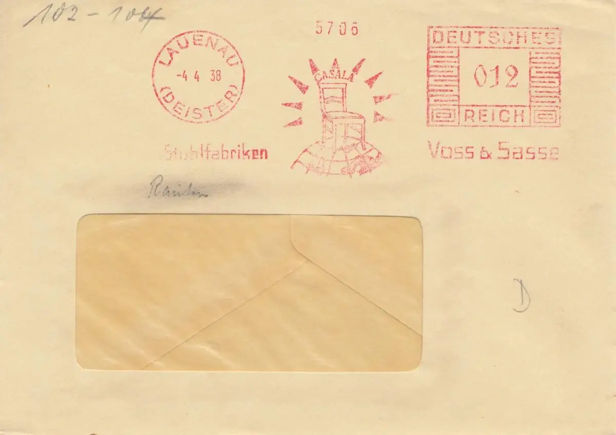 Lauenau Deister 1938 Stuhlfabriken Voss Freistempel