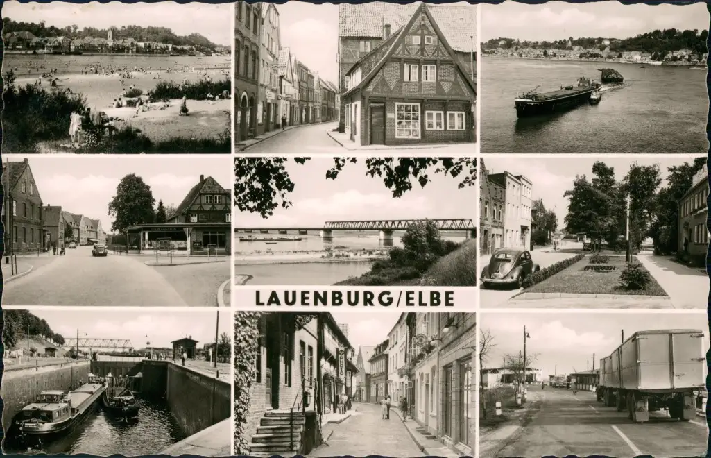 Lauenburg (Elbe) 9 Foto-Ansichten Straßen, Schleuse, Häuser VW Käfer uvm. 1957