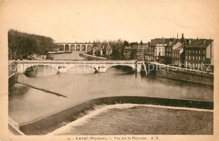 Laval_Mayenne Vue sur la Mayenne et ses ponts Laval Mayenne postalisch nicht gelaufen 1934 Erhaltung siehe scans [FriedD77] Frierer