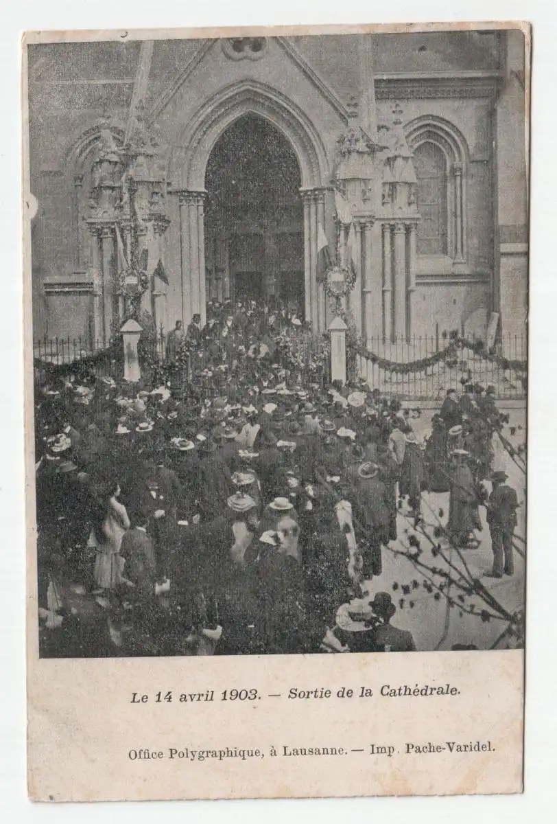 Le 14 avril 1903. - Sortie de la Cathedrale. Office Polygraphique, a Lausanne. - Imp. Pache-Varidel.
